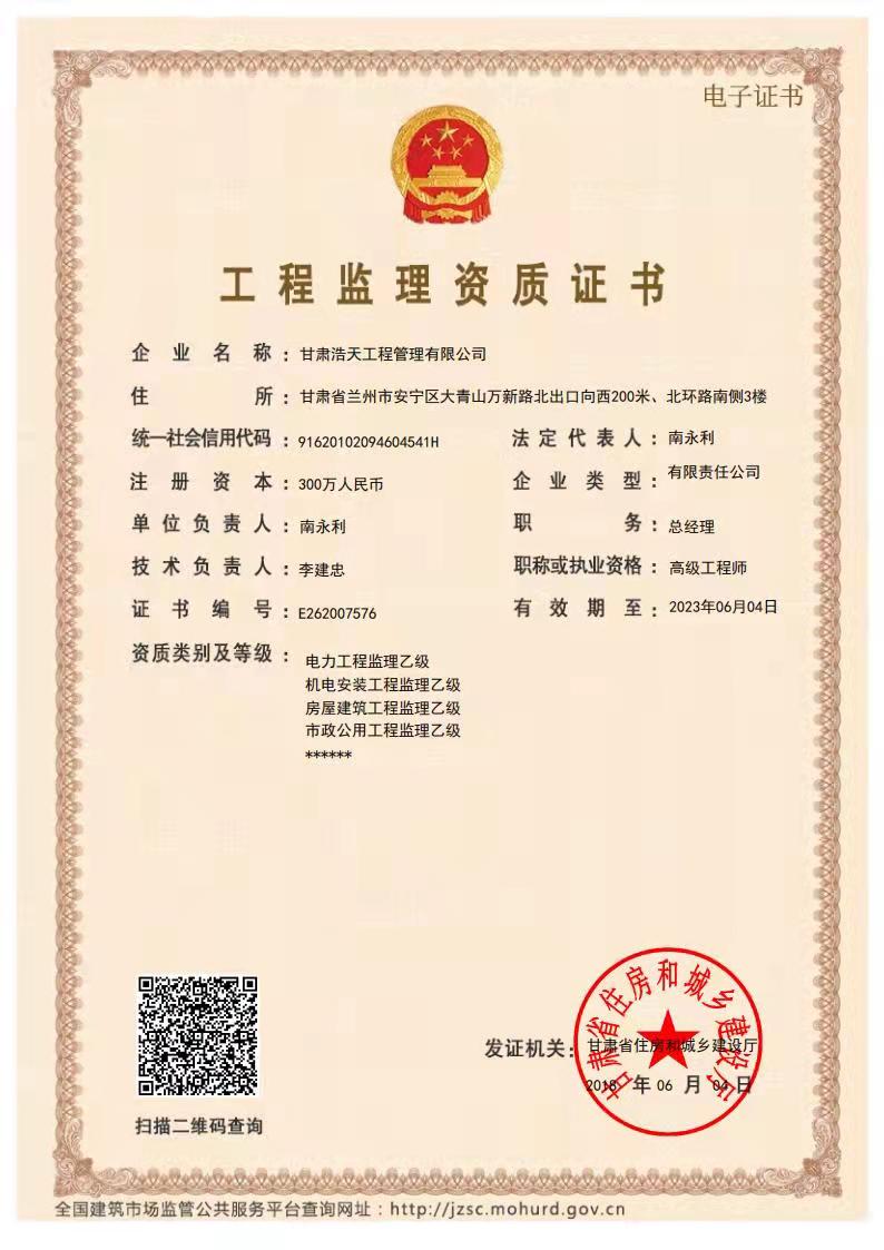 工程監(jiān)理資質(zhì)證書(shū)