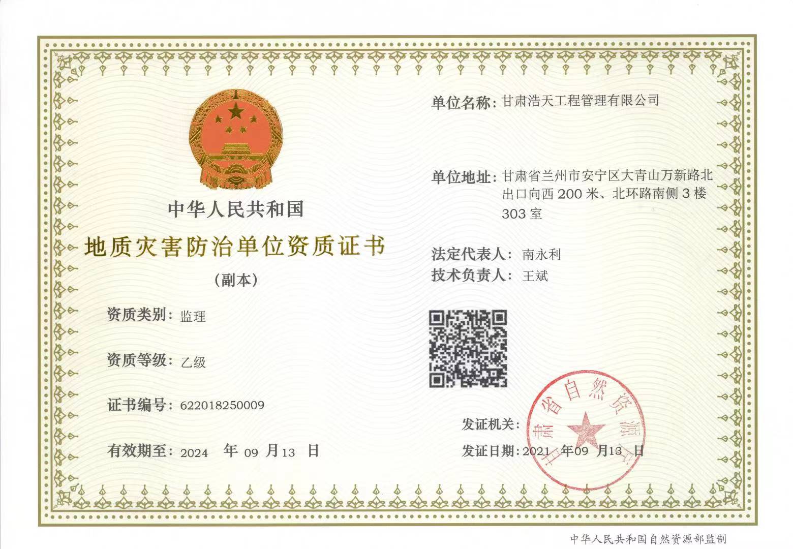 地質(zhì)災(zāi)害治理監(jiān)理單位資質(zhì)